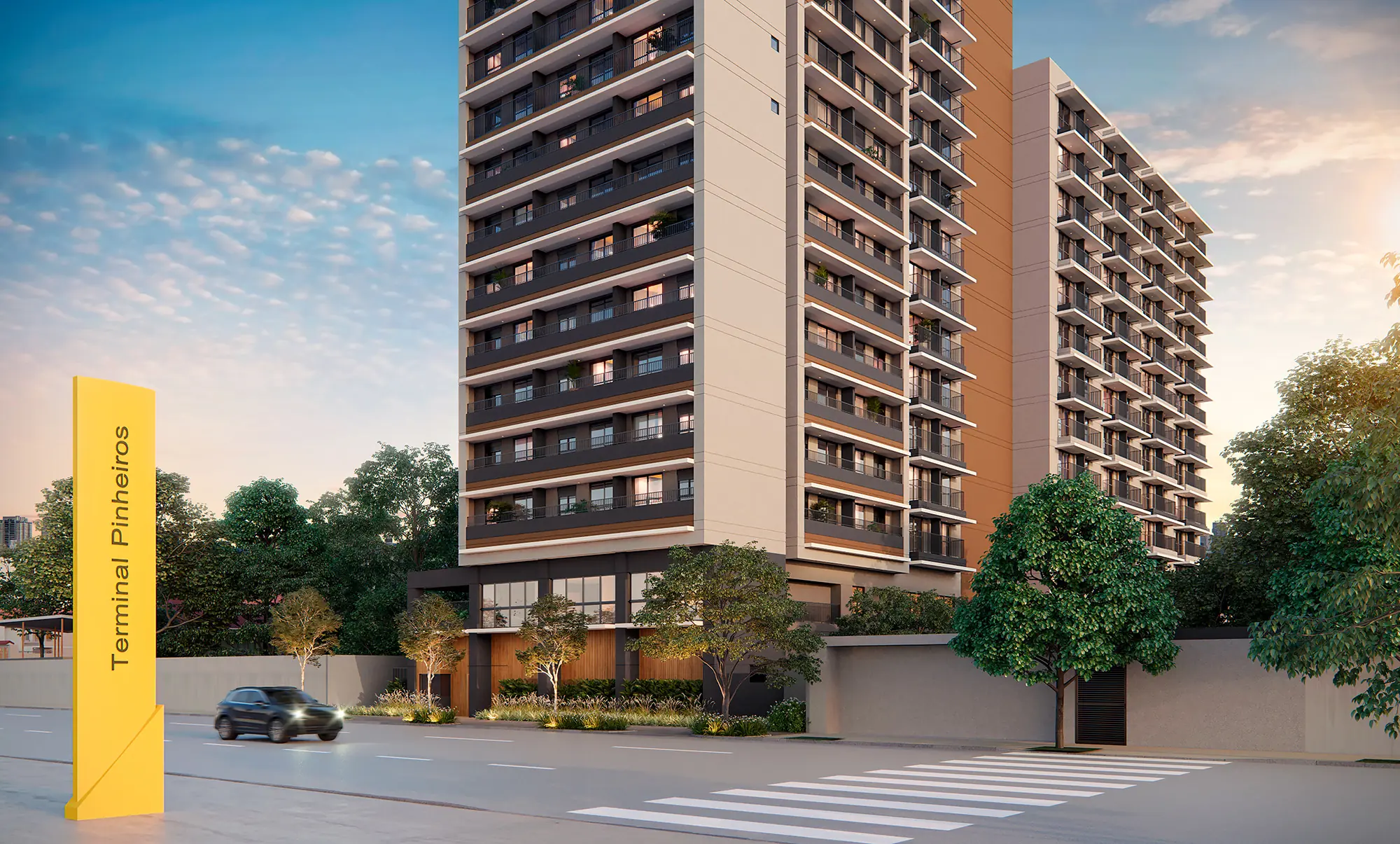 A proposta do projeto é proporcionar ao morador o uso contínuo do empreendimento, com ambientes que trazem conforto para momentos de descontração e funcionalidade para trabalho e estudo. Um conceito jovem através do uso das cores em tons pastéis e o layout pouco tradicional e muito versátil, ainda assim, não deixando elegância de lado com uso da madeira e materiais naturais. Iluminação ousada, elementos de teto e peças escolhidas pelo design especial, reforçam a contemporaneidade no projeto.” nim id est laborum. Sed ut perspiciatis unde omnis iste natus error sit voluptatem accusantium doloremque laudantium, totam rem aperiam, eaque ipsa quae ab illo inventore veritatis et quasi architecto beatae vitae dicta sunt explicabo. Nemo enim ipsam voluptatem quia voluptas sit aspernatur aut odit aut fugit, sed quia consequuntur magni dolores eos qui ratione voluptatem sequi nesciunt. Neque porro quisquam est, qui dolorem ipsum quia dolor sit amet, consectetur, adipisci velit, sed quia non numquam eius modi tempora incidunt ut labore et dolore magnam aliquam quaerat voluptatem.da vista espetacular da cidade, a partir deste ponto mais alto da rua Harmonia. Outro ponto importante do projeto é que temos o lazer distribuído ao longo da torre; criando assim um edifício ativo, que proporciona pontos de encontro entre as pessoas, sensações e percepções diferentes, que melhoram a qualidade de vida daqueles que vão usufruí-lo. Há aqui um certo conceito de hotelaria: um edifício que se abre para a cidade, com a ideia de receber as pessoas com um generoso espelho d’água e que dialoga com a paisagem. No embasamento teremos também lojas de varejo, que trazem conforto, comodidade e segurança para quem habita a região. Idealizamos um projeto com economia de materiais de fachada, já que teremos muitas aberturas, em função das vistas. Pensamos em trabalhar com desconstruções em alturas. Imaginamos também uma fenda na fachada, que rompe e conecta o edifício a partir do solo. Isso também proporciona que a gente favoreça a vista em dois vetores diferentes, como se fossem dois blocos, cada um ligeiramente voltado para uma vista – além da possibilidade de criarmos um novo diálogo com a cidade. Esse elemento será a madeira. Ela vai começar do chão e irá permear a torre inteira, passando por todos os pavimentos.” Douglas Tolaine, Design Principal do estúdio São Paulo da Perkisn&Will